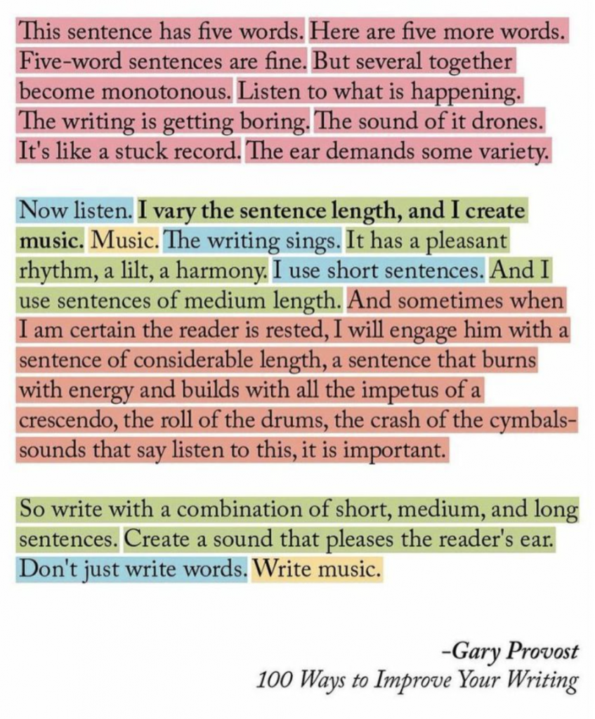 As Gary Provost says, “Don’t just write words. Write music.”